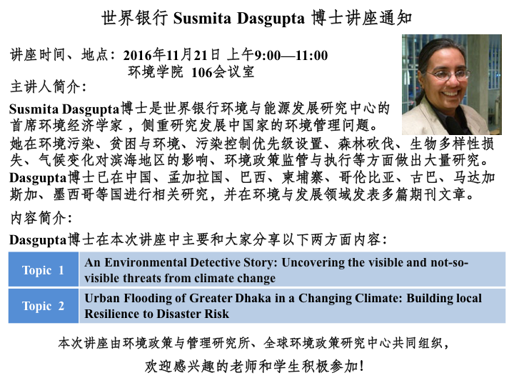世界银行Susmita Dasgupta博士讲座通知