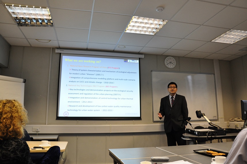 威斯敏斯特大学高度重视我们的来访,副校长Geoff Petts教授于1月28日在其办公室接见了访问团成员,Petts教授就两校在未来开展学术交流、项目合作以及学生培养等方法表达了浓厚的兴趣。除此之外,在威斯敏斯特大学,我们和他们两个学院的研究小组开展了学术交流。第一,与Sharron McEldowney 教授领导的水科学研究小组进行学术交流,沈珍瑶教授首先从总体上介绍了我们学院的基本情况,王烜老师就我们学院水环境与水生态相关科研情况进行了报告,该研究小组的老师与博士生团队分别做了题为《Treatment of azo dye contaminated wastewater using bio-electrochemical systems》、《Molecular techniques to detect harmful algae》、《Flow management in England and Wales: the catchment abstraction management strategy process》、《Increases in fish farm chemicals to control sea lice》等学术报告;第二,与Simon Joss教授领导生态城市研究小组进行了交流,张力小老师就我国生态城市理论与实践方面的内容做了汇报。