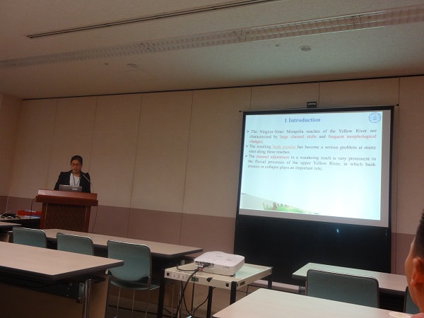 在高静进行口头汇报时,听众学者们表现出了很大的关于黄河塌岸的兴趣,有学者询问关于航空影像解译以及野外考察实验的情况。对此,高静不仅在汇报的15分钟内充分与听众们进行了问题探讨,更在会后与之进行了深入交流,并互留联系方式,利于在以后的研究中进一步互相学习进步。张欣的汇报内容与泥石流灾害有关,而日本在灾害研究方面造诣较高,因此会场中的日本学者给予了一定的建议,即将实验成果与之前的日本学者的研究内容进行比对,找出中国的非均质泥石流的独特性,以便更加深入地对泥石流堆积灾害进行研究。