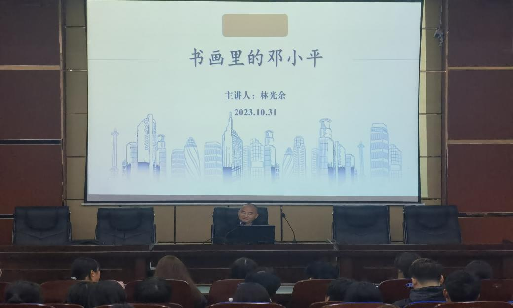 10月31日晚七点,pp电子模拟网站名师工作室负责人林光余在滨江校区明德楼希贤厅作《书画里的邓小平》专题讲座。讲座由pp电子模拟网站院长石乾福主持,pp电子模拟网站部分教师、艺术学院部分教师及全体大一新生共计200余人参加。