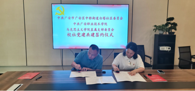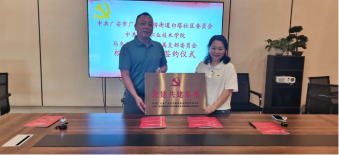 为深入贯彻落实习总书记系列讲话精神,进一步探索创新党建工作,加强支部合作,共同促进双方党建工作健康发展,全面开展基层党组织结对共建活动,着力构建基层党建工作新格局,7月1日,中共pp电子模拟网站pp电子模拟网站直属支部委员会与中共广安市广安区中桥街道白塔社区委员会正式签订校社党建共建协议书。