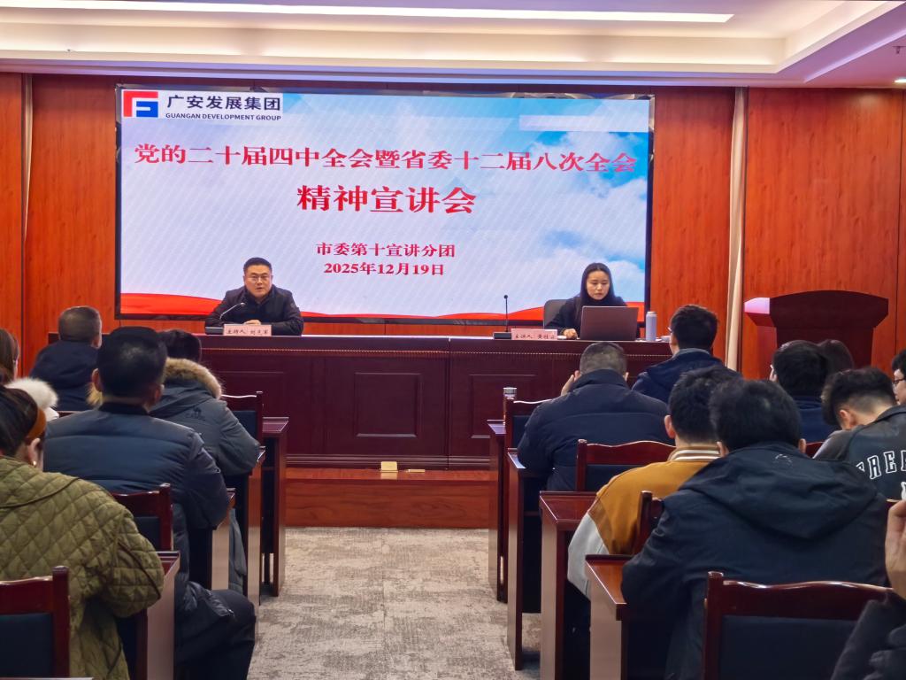 2025年12月19日,pp电子官网教师黄桂霖前往广安发展集团,为集团的企业管理者、党员同志和职工代表带来一场学习贯彻党的二十届四中全会精神的主题讲座。