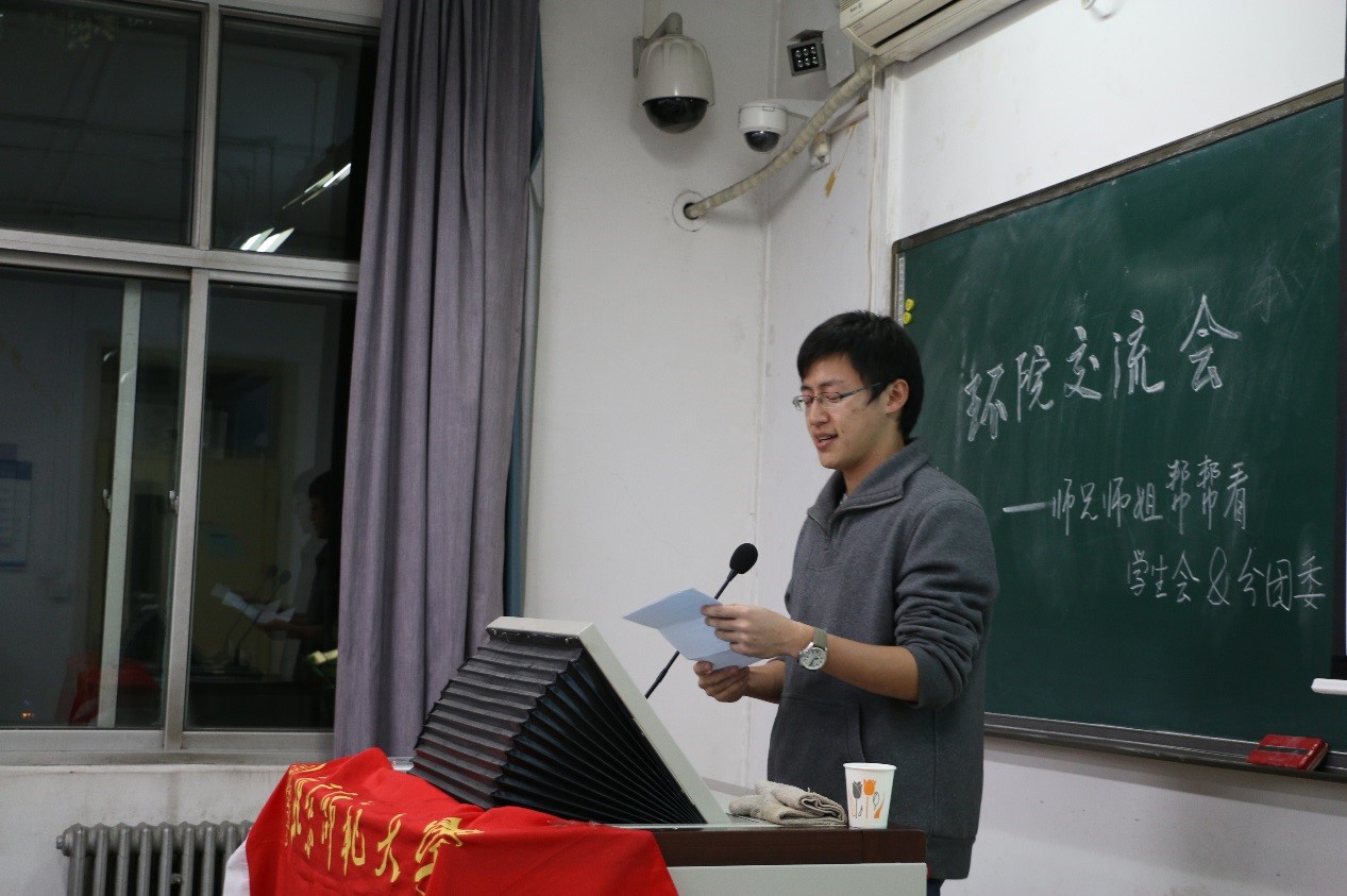 12月15日晚八点,由永利集团官网入口院会学业部和分团委联合举办的“环院交流室之师兄师姐帮帮看”活动在教二203顺利举行。本次活动共邀请到武晓宇、郭倚天,刘夏和刘芦萌四位师兄师姐。活动现场气氛十分活泼。