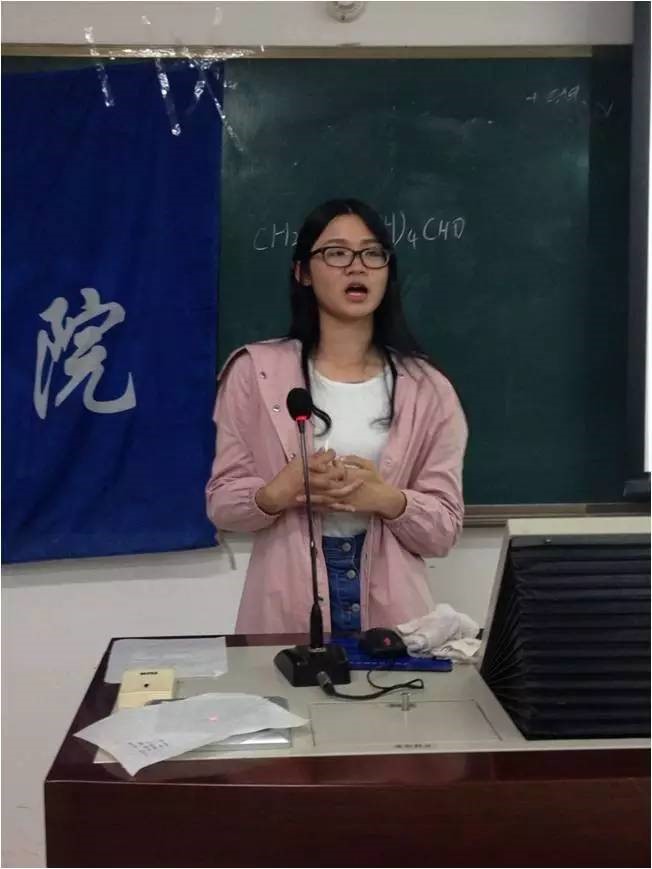 6号周航 选题《基本营养物质》主讲单糖(葡萄糖和果糖)她从分子式、碳氧键、化学性质、工业用途、化学反应等全面展开,黄小凯评委指出其不足是教学重点不突出。对于“专业素质”和“受学生欢迎”,周老师认为前者固然重要,但是教学意义更侧重学生的主动接受与收获,所以两者相权取后者。