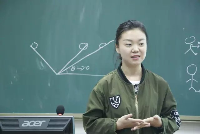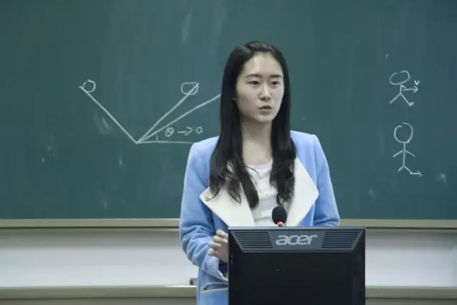 第六位是刘凝音同学,她选择了质点的角动量作为教学内容。她在抽签作答中,十分赞同教育中有固定的方法比如教师礼仪等,但教师也应有适合自己的风格,且作为教师最重要的是授人以渔,教会学生如何学习。