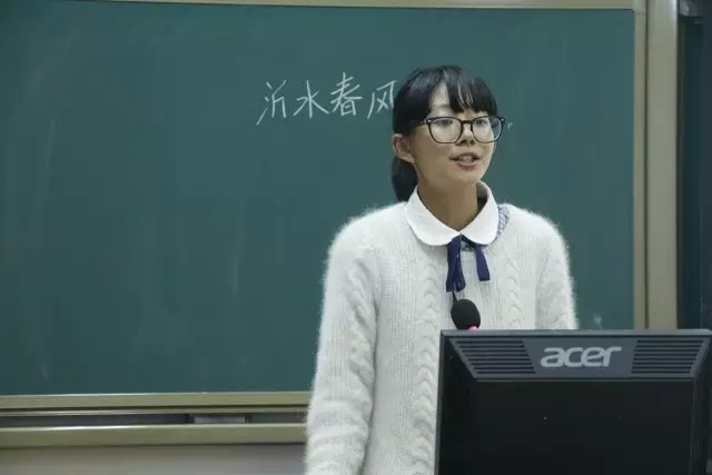 第五位选手沈心晨同学,简要讲述了《论语》中有关沂水春风的部分。抽签作答环节中,面对创新的分桃子问题,她认为语文不同于数学的魅力正是非唯一性的答案,对于有争议的问题,可以在课堂上引导同学进行讨论。