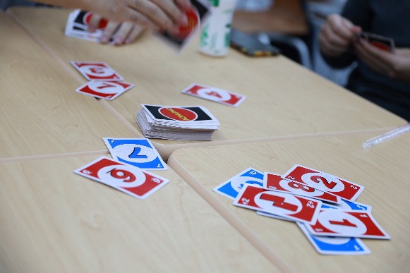 UNO是一款家喻户晓的经典桌游,简单易上手。在活动现场,同学们纷纷组队,激烈角逐,笑声不断。每一轮比赛都是一场紧张刺激的较量,玩家们的运筹帷幄更是精彩纷呈,气氛热烈,同学们尽情释放压力,感受到了活动带来的愉悦和放松。