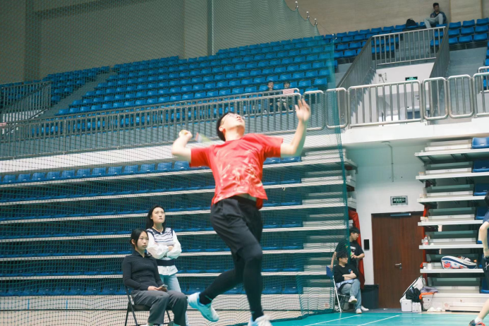 在半决赛中我们直面强敌心理学院。队员们互相鼓励,全力以赴,展现出“遇强则强,永不放弃”的坚韧精神。特别是男单选手李泽龙,尽管膝盖不适,仍以小局2:1的成绩勇夺半决赛的关键一分,为队伍拔得头筹。最终,永利集团官网入口取得了羽毛球赛第四名的好成绩。