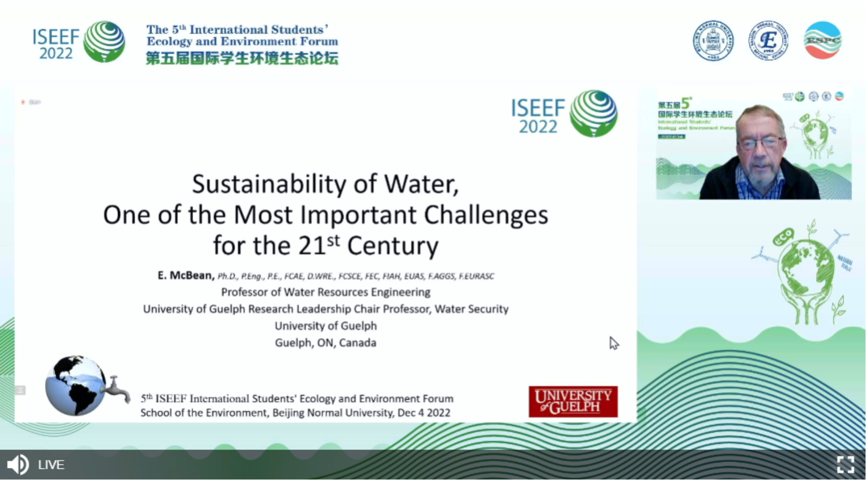 On December 3-4, 2022, the 5th International Student’s Ecology and Environment Forum with the theme of "Ecological Civilization and Low-Carbon Transition" was held at Beijing Normal University. Due to the epidemic situation, the ISEEF is live broadcast globally. The conference was organized by Beijing Normal University, Beijing Society for Environmental Science and Ecological Civilization Education & Research Branch of China Association of Higher Education, and hosted by the School of Environment, Beijing Normal University, the Office of International Exchange & Cooperation, Beijing Normal University and the Environmental Education Branch of Beijing Society for Environmental Science.