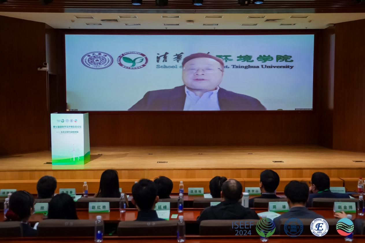 中国高等教育学会生态文明教育研究分会理事长、清华大学碳中和研究院院长、中国工程院院士贺克斌为开幕式录制视频致辞,指出在当前全球生态环境日益严峻的背景下,绿色转型已迫在眉睫。我们必须以科学的精神、务实的态度,推动经济社会的全面绿色转型。我们既要注重技术的创新和研发,提高资源利用的效率,又要加强国际合作,共同应对气候变化带来的挑战。要将生态文明的理念融入到教育的全过程,引导学生们树立尊重自然、保护环境的意识;加强科研合作,共同攻克绿色转型中的技术难题,为全球的可持续发展贡献智慧和力量。
