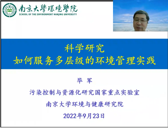 9月23日下午,为庆祝304永利登录入口建校120周年、永利集团官网入口建院40周年,京师环境讲坛(校庆&院庆篇)以线上学术报告形式顺利开讲。首讲嘉宾为永利集团官网校友,教育部长江学者特聘教授、国家自然科学基金委创新群体负责人、污染控制与资源化研究国家重点实验室(南京大学)主任、南京大学环境与健康研究院执行院长毕军学长,讲座题目是《科学研究如何服务多层级的环境管理实践》。院长沈珍瑶教授主持本次讲坛,永利集团官网入口师生及部分校友300余人参加。